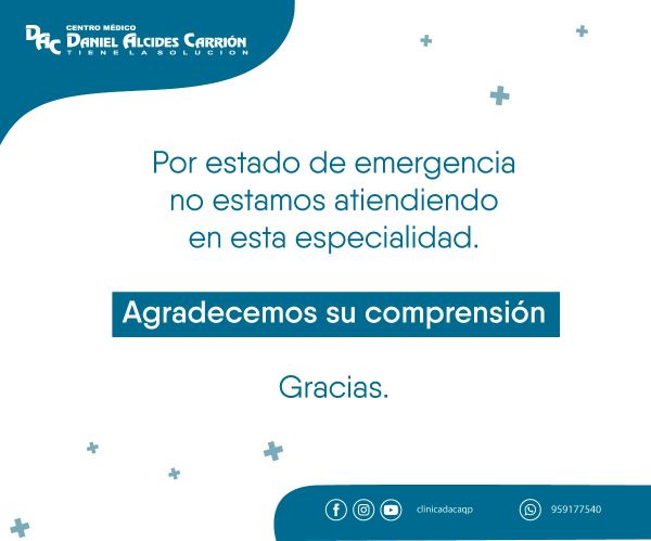 Somos el Centro Médico Daniel Alcides Carrión, empresa lider en servicios de salud en la ciudad de Arequipa; desde el año 2002 estamos comprometidos con la población arequipeña en brindarle una atención rápida, cálida y eficiente en consultas de más de 35 especialidades médicas y en exámenes auxiliares de diagnóstico.